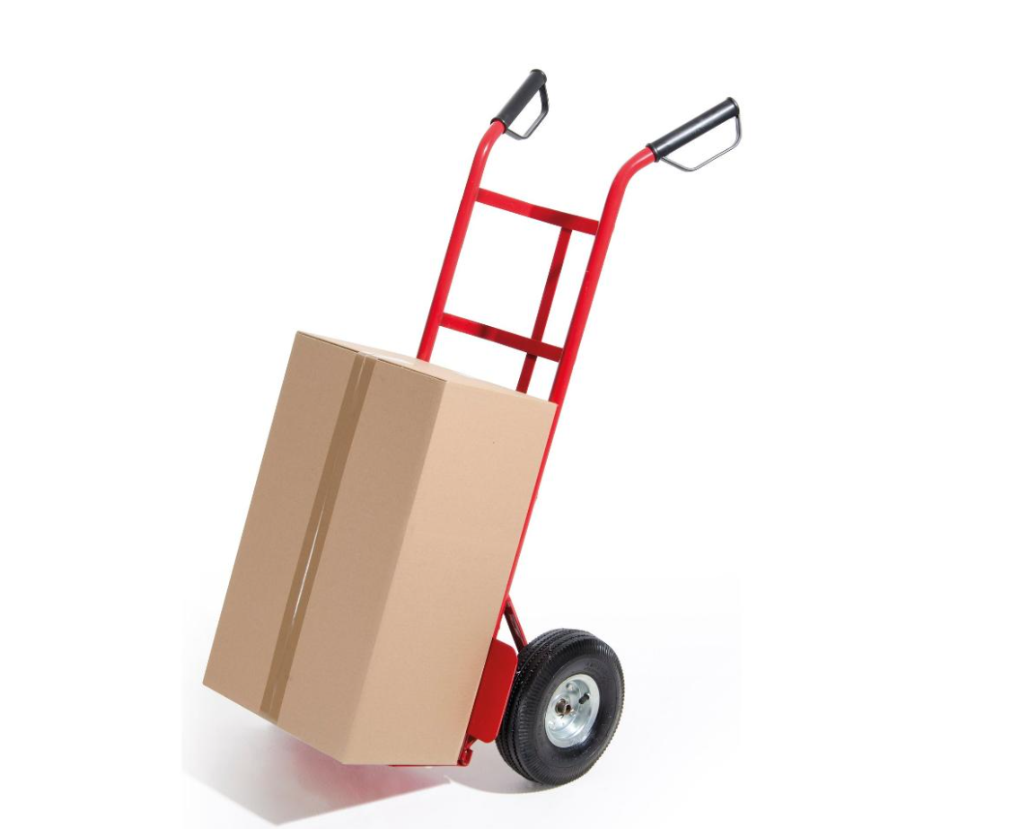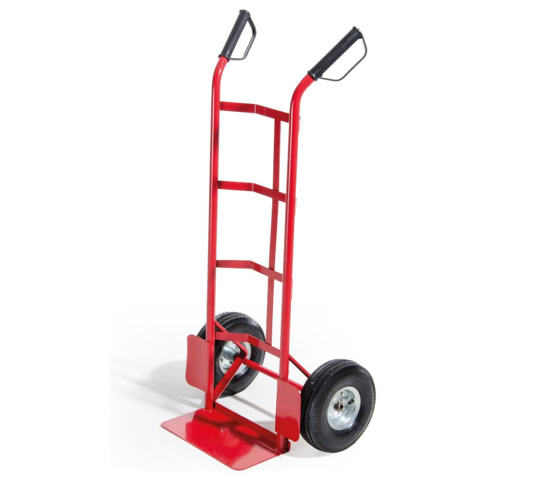 Le traverse ricurve permettono il traporto di trasporto di fustini, bidoni e rotoli, mentre le ruote pneumatiche facilitano l’utilizzo su qualsiasi tipo di pavimentazione.