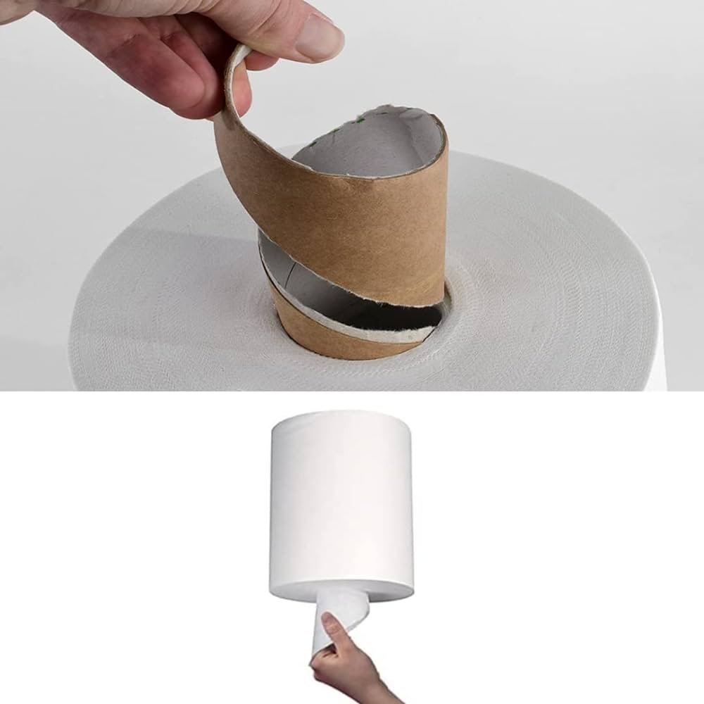 Dotata di un’anima di cartone all’interno sfilabile, permette alla carta oltre lo svolgimento tradizionale orizzontale, lo svolgimento interno tramite apposito dispenser.