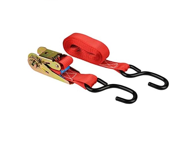 La fascia con cricchetto e gancio a S è un dispositivo di ancoraggio utilizzato per fissare carichi in modo sicuro durante il trasporto. È composta da un nastro in poliestere ad alta tenacità, un cricchetto per la tensione e ganci a forma di “S” alle estremità per l’aggancio ai punti di ancoraggio.