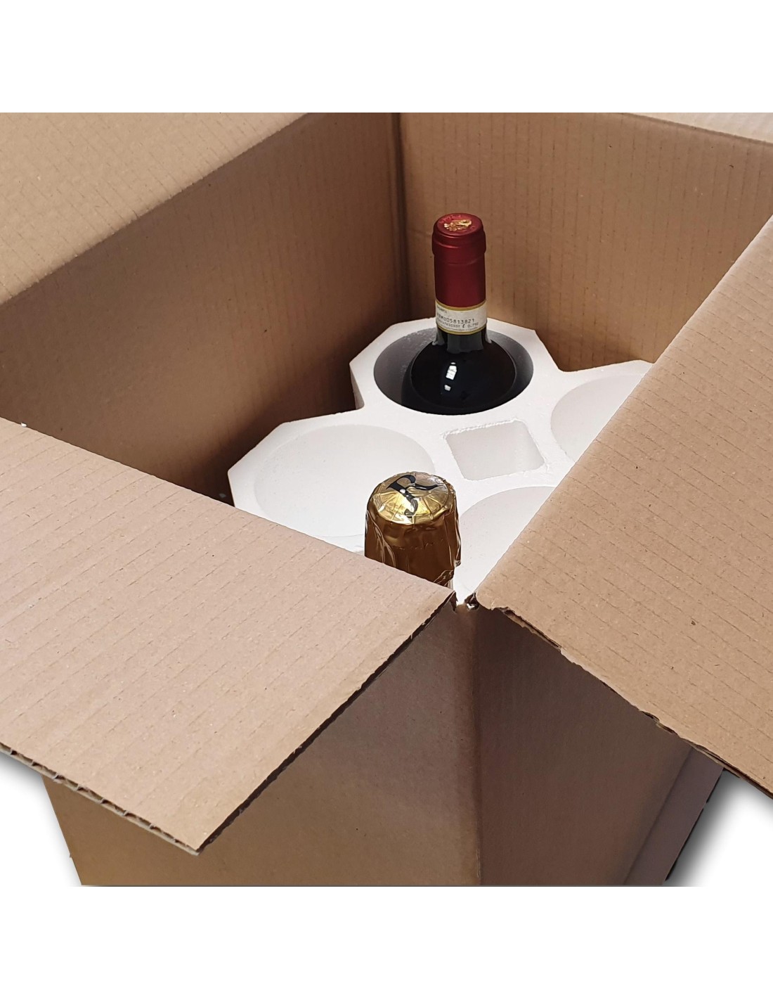 Il portabottiglie in polistirolo realizzato in polistirolo espanso o EPS, è un imballo progettato per proteggere interamente le bottiglie di vino, d’olio o di altri prodotti dai danni che potrebbero essere causati da urti o bruschi movimenti durante il trasporto o la spedizione.
